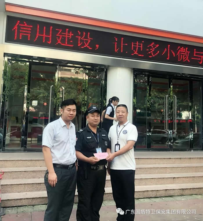 日前,三水农村信用社特别向98彩网特卫集团和张水生同志本人发来了表扬信,感谢98彩网特卫保安集团,感谢张水生。集团董事长夏学树特别委托公司管理人员第一时间把慰问和慰问金送到了一线执勤点,并号召集团上下向张水生同志学习。