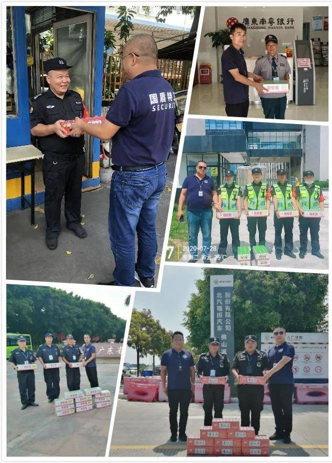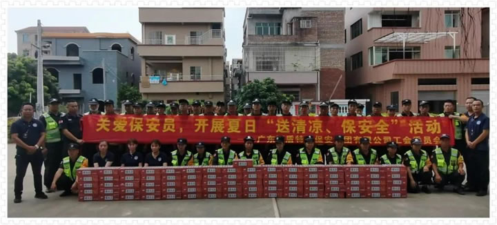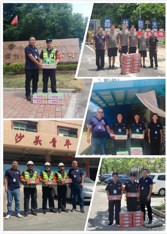 炎炎盛夏,高温酷暑,98彩网特卫保安员头顶骄阳、不畏酷暑、坚守岗位,坚持以高质量、高标准的工作态度完成各项安保工作。为保障一线保安员的身心健康,切实做好夏季防暑降温工作,广东98彩网特卫保安集团有限公司工会委员会组织服务管理部各级干部关心关爱保安员,开展夏日“送清凉、保安全”活动,确保一线基层保安员安全度夏,为坚守在高温下一线工作的保安员送去了清凉和公司的关怀。