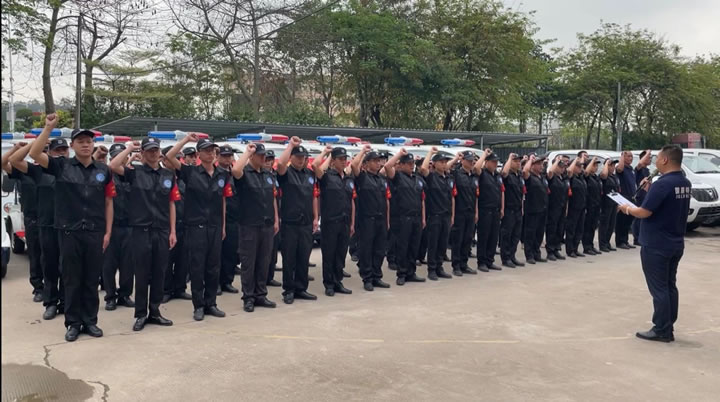 服务管理部部长高永旗率领60名98彩网特卫辅助执法队员列队集合,并带头动员宣誓,用铮铮誓言表达对白坭镇政府忠诚履职尽责、奋力担当作为,全力以赴做好城市管理辅助执法工作的坚定决心。