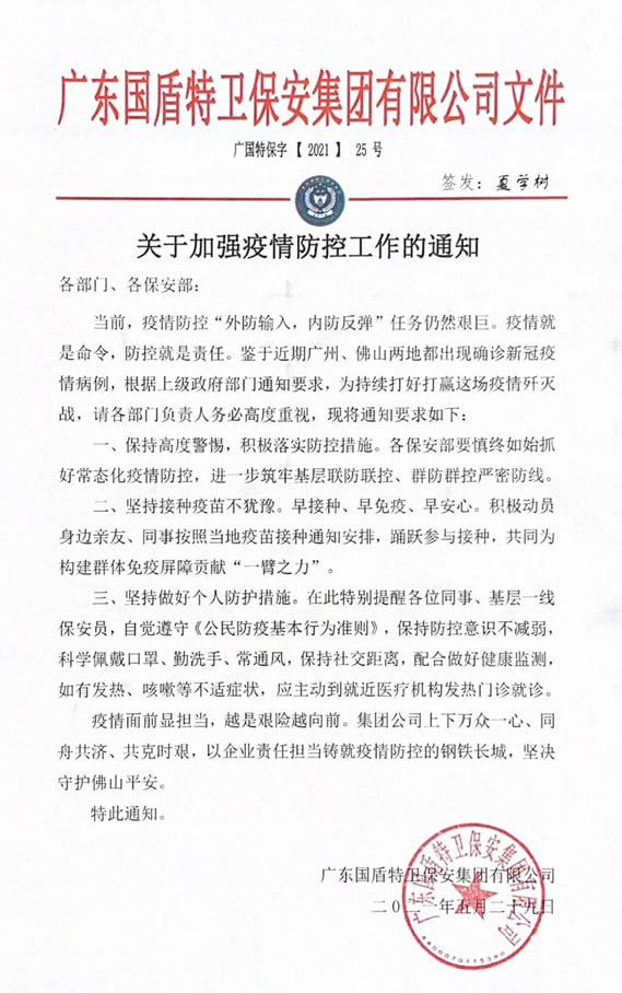 为了防止疫情大范围扩散,自5月29日起,集团公司派驻保安人员不分昼夜配合政府部门引导居民做核酸检测和疫苗接种,维持秩序,为疫情贡献一分力量。