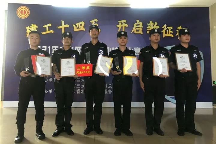 为搭建展示保安职业技能人才才能的平台,通过技能练兵、比武竞赛,培养一批爱国敬业、技艺精湛、具有专门技能的人才, 进一步提升保安从业人员的安全服务技能,推动行业整体服务水平的不断提高。9月29日, “建功十四五 开启新征程” — 2021年三水区西南街道保安员职业技能竞赛在水都基地职工服务中心举行。该竞赛由佛山市三水区总工会、西南街道总工会主办,共有12家单位28名保安员选手参赛,我司代表参赛选手龙大标、邓嘉贤、李志勇、辜操全、李其昆、杨海潮分别获得一等奖、二等奖、三等奖、优秀奖。